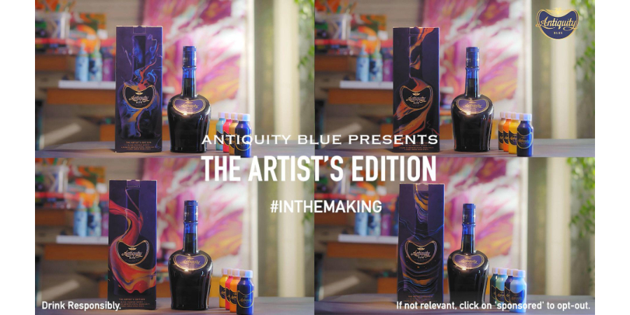 The campaign’s idea is to bring the most trending Fluid art with Antiquity Blue whisky and in order to make this even more trending we got @sakshilunkadart onboard. She designed the new Antiquity Blue bottle highlighting the richness and smoothness of the liquid with the new and colourful packaging